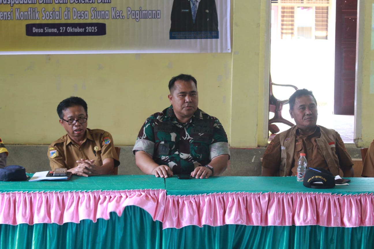 Sosialisasi bertempat di Kantor Desa Siuna, dan dibuka Dandim 1308/LB, Letkol Kav La Ode Azhar Hamid S.H.,M.Han, hadiri Kepala Badan Kesbangpol Kabupaten Banggai, Syaifuddin Muid. Ws. Danramil Peltu Inf Yanto Balubi, Kades Siuna Sumirto Musa serta puluhan warga.