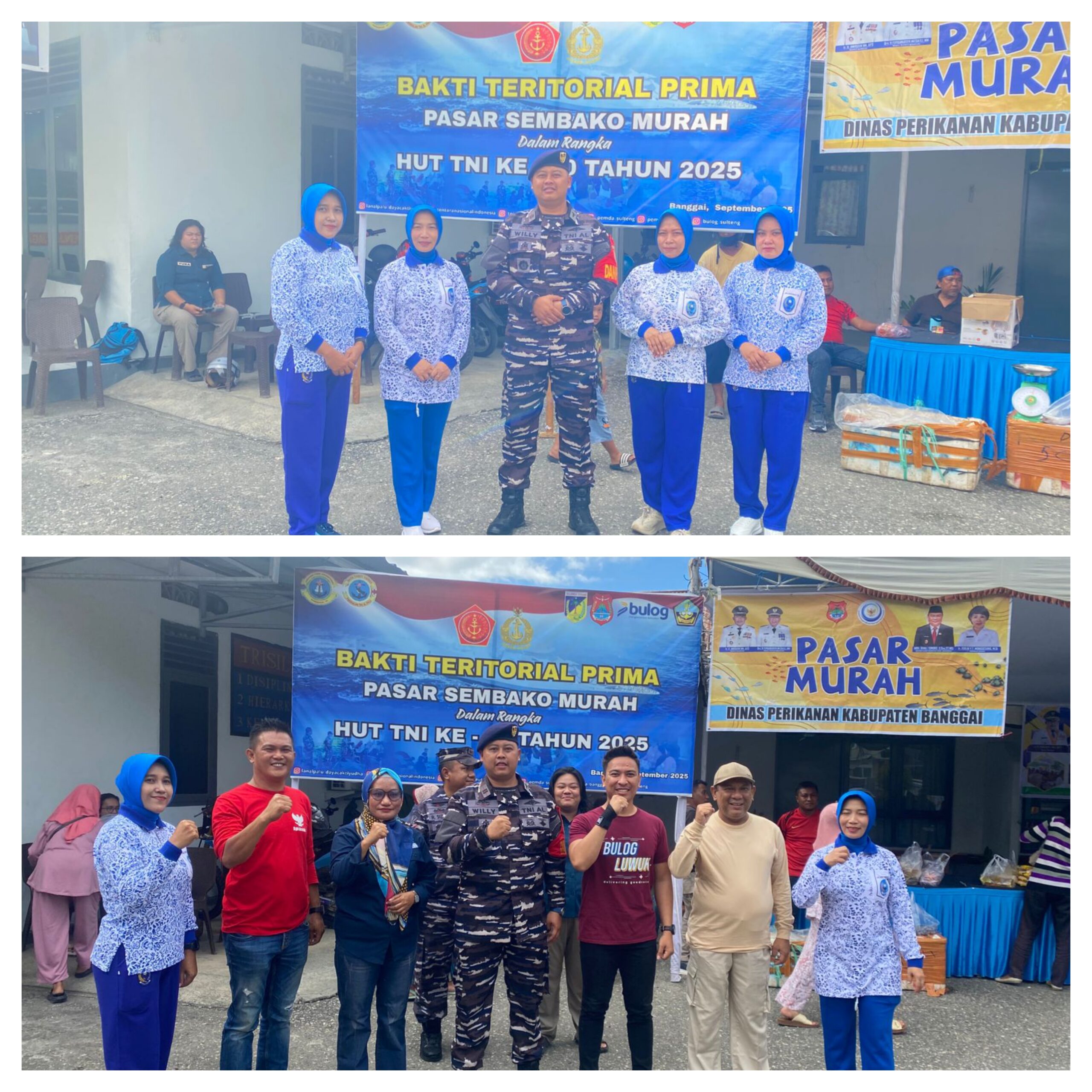LUWUK,Ragamrajawalinusantara.id — Dalam rangka HUT TNI ke 80 Tahun 2025 Mendukung Program Bakti Teritorial Prima TNI, Pos TNI AL Luwuk (Posal Luwuk) di bawah jajaran Pangkalan TNI AL (Lanal) Palu menggelar kegiatan Pasar Sembako Murah bagi masyarakat sekitar.Kamis (25/09/2025)