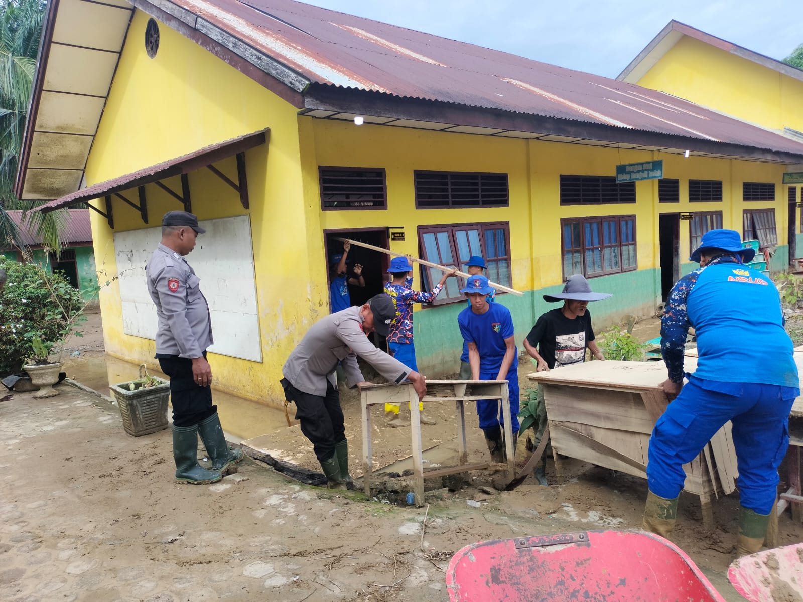 Kegiatan pembersihan dimulai sekira pukul 09.25 WIB hingga selesai, dengan sasaran utama ruang kelas, halaman sekolah, serta fasilitas penunjang lainnya yang terdampak lumpur dan sisa material banjir. Personel gabungan tampak bahu-membahu membersihkan lingkungan sekolah agar dapat segera digunakan kembali untuk kegiatan belajar mengajar.