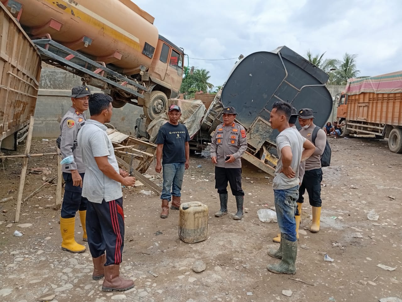 Pasca banjir, Kapolres Aceh Tamiang AKBP Muliadi, S.H, M.H mendatangi langsung lokasi yang berada di Desa Bukit rata kecamatan Kejuruan muda untuk melakukan evakuasi kedua unit mobil tangki tersebut. 17 Desember 2025