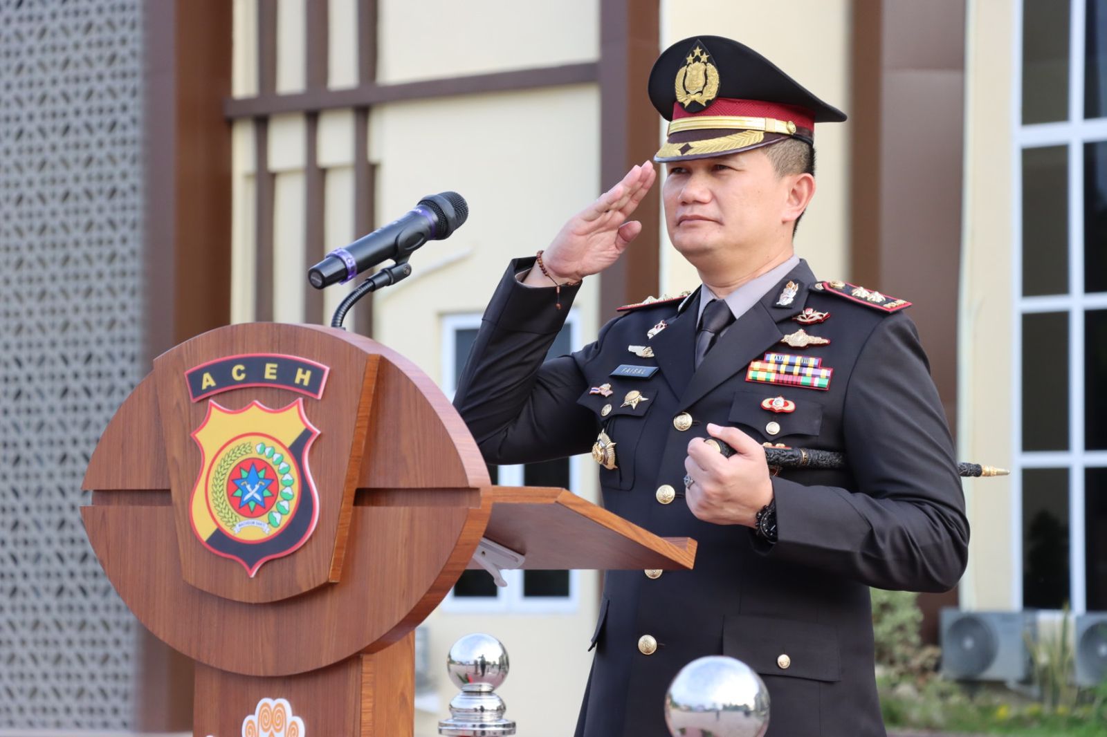 Upacara berlangsung dengan khidmat dan penuh semangat kebangsaan, dipimpin langsung oleh Kapolres Pidie Jaya AKBP Ahmad Faisal Pasaribu, S.H., S.I.K., M.H., serta diikuti oleh seluruh pejabat utama, perwira, personel, dan para Kapolsek jajaran Polres Pidie Jaya.
