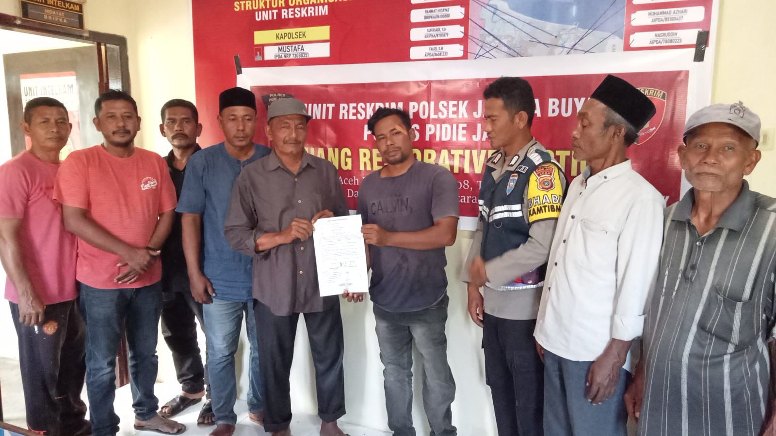 Mediasi dilaksanakan di ruang Restorative Justice Polsek Jangka Buya, dihadiri oleh Ps. Kanit Reskrim, Keuchik Gampong Reului Mangat, Tuha Peut, Bhabinkamtibmas, serta keluarga kedua belah pihak.