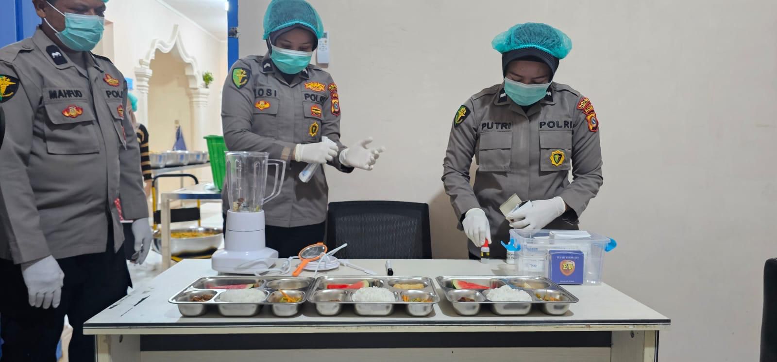 Pelaksanaan kegiatan tersebut turut diawasi oleh Kasiwas Polres Pidie Jaya, Iptu Maimun Azhari, dan Kaur Dokkes Polres Pidie Jaya, Aipda Husna Saputri bersama Staf Dokkes Polres Pidie Jaya memeriksa beberapa menu makanan seperti nasi, daging semur, tahu, tumis kacang panjang dengan wortel, dan buah semangka.