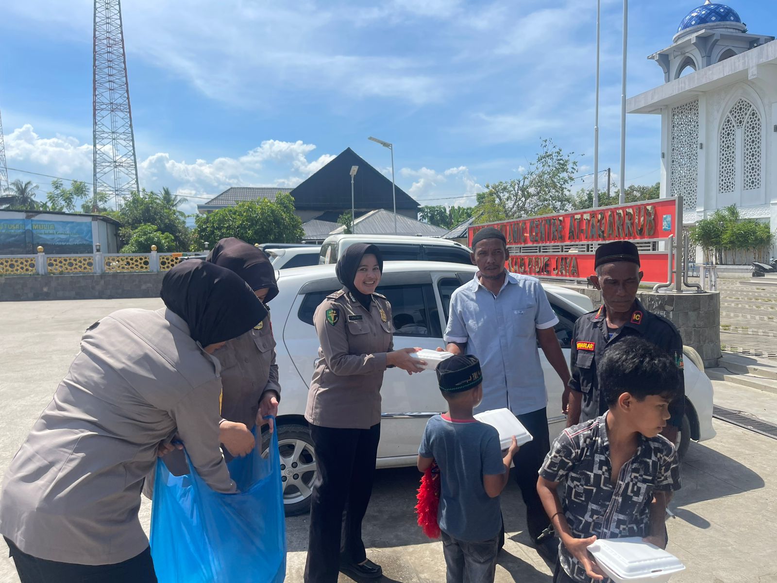 Dipimpin oleh Bripka Rita Zahara, Brigadir Viviyana, dan Briptu Suci Sukmawaty, kegiatan ini berupa pembagian 50 kotak nasi kepada masyarakat setempat.