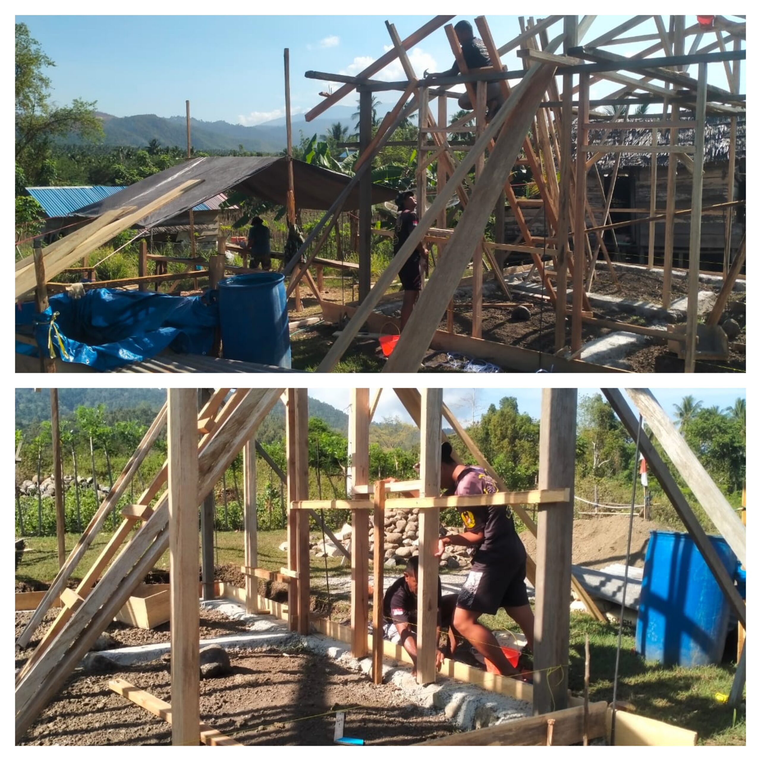 Dari pantauan di Lokasi TMMD para satgas yang dibantu warga masyarakat sedang melakukan pekerjaan Bedah Rumah RTLH bagi masyarakat terlihat kerjasama antara satgas dan warga sudah terjalin sangat baik, dalam waktu beberapa hari pekerjaan fisik injak sudah mencapai 40 Persen