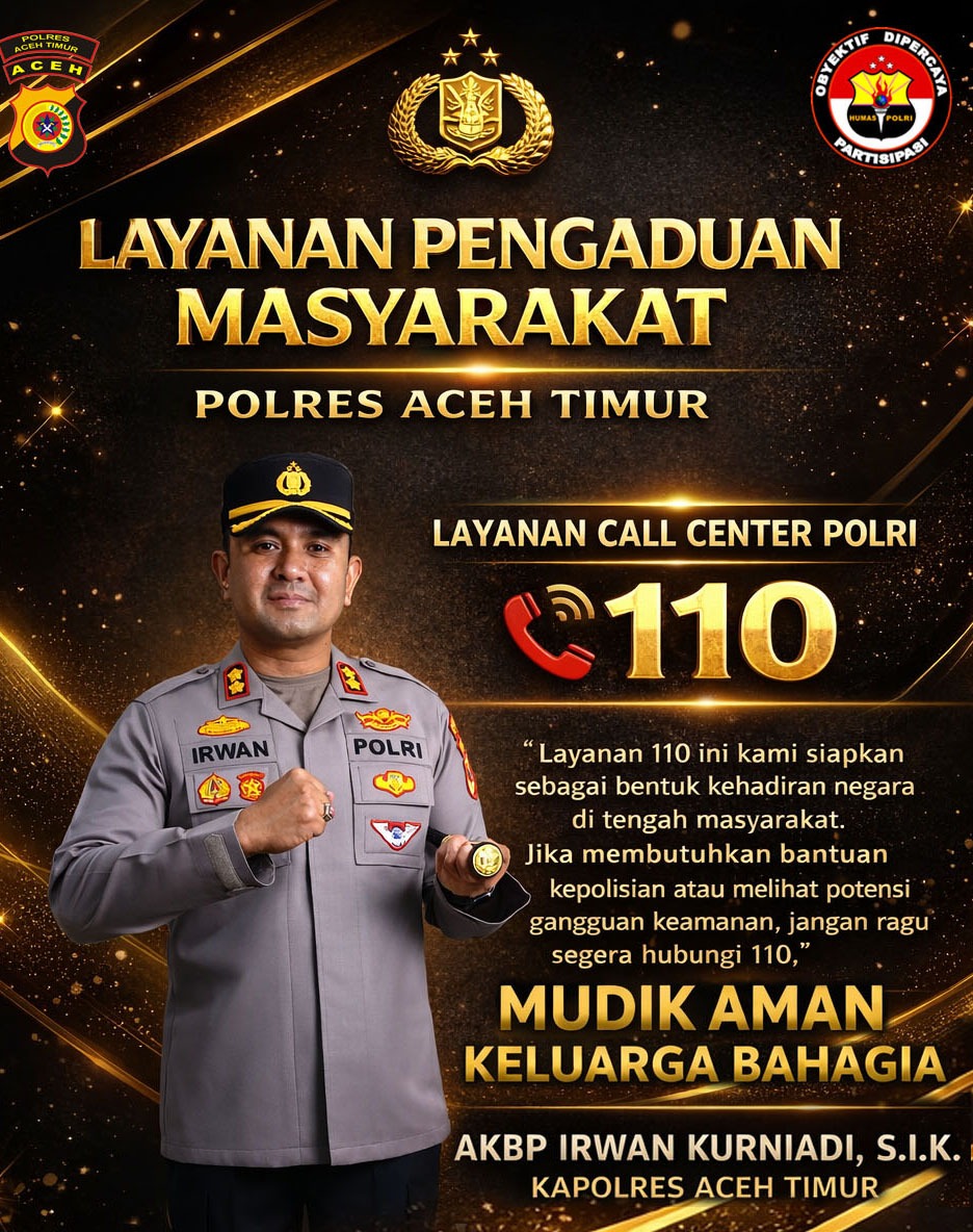 Aceh Timur: Ragamrajawalinusantara.id_ Polres Aceh Timur, Polda Aceh mengajak masyarakat untuk memanfaatkan layanan hotline Polri 110 sebagai saluran cepat pelaporan dan permintaan bantuan kepolisian, khususnya selama Ramadhan 1447 Hijriah hingga momentum Lebaran 2026.