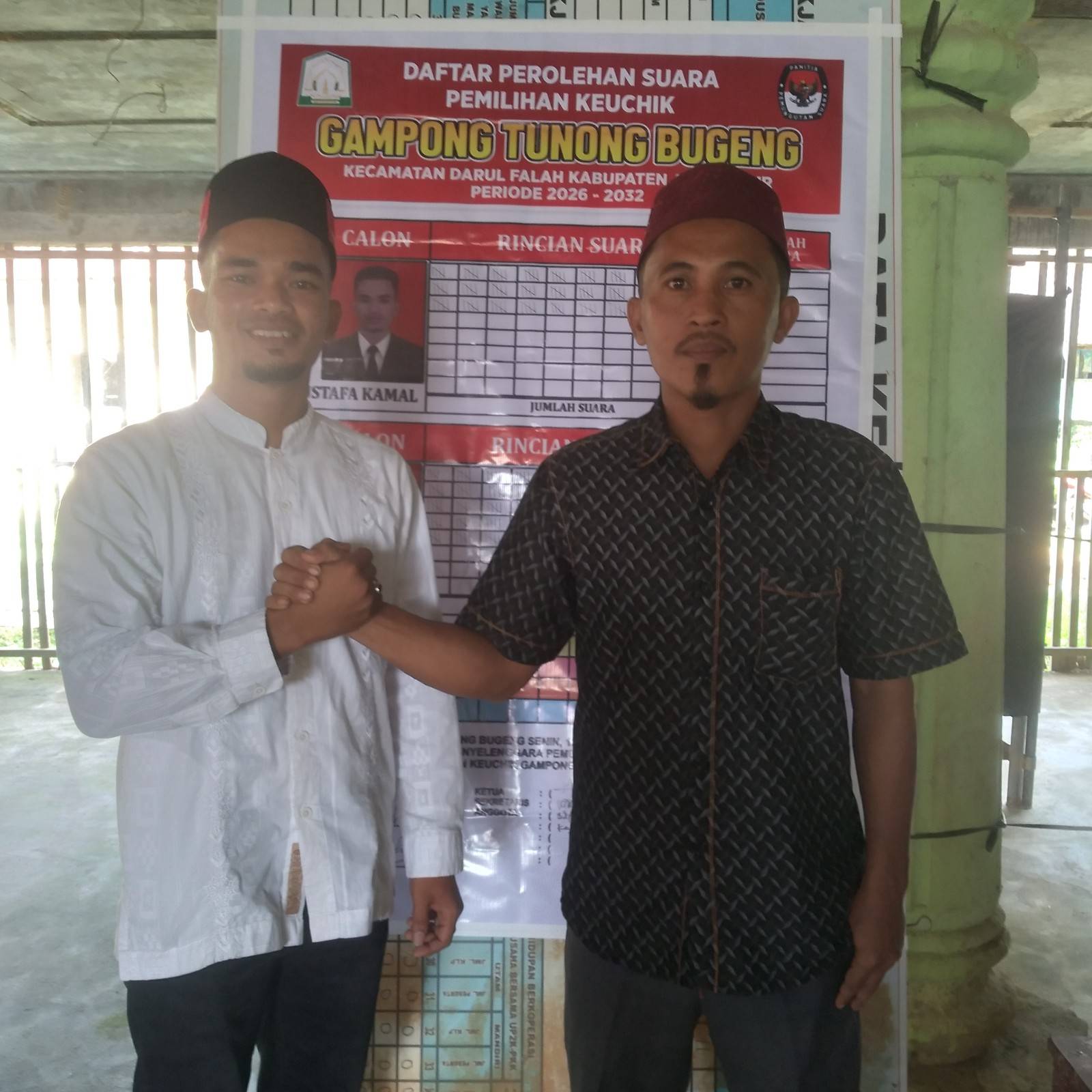 Proses pemungutan hingga penghitungan suara dihadiri langsung oleh pihak Forkopicam Darul Falah, Imum Mukim, serta rombongan warga masyarakat Tunong Bugeng yang turut menyaksikan transparansi setiap tahapan.