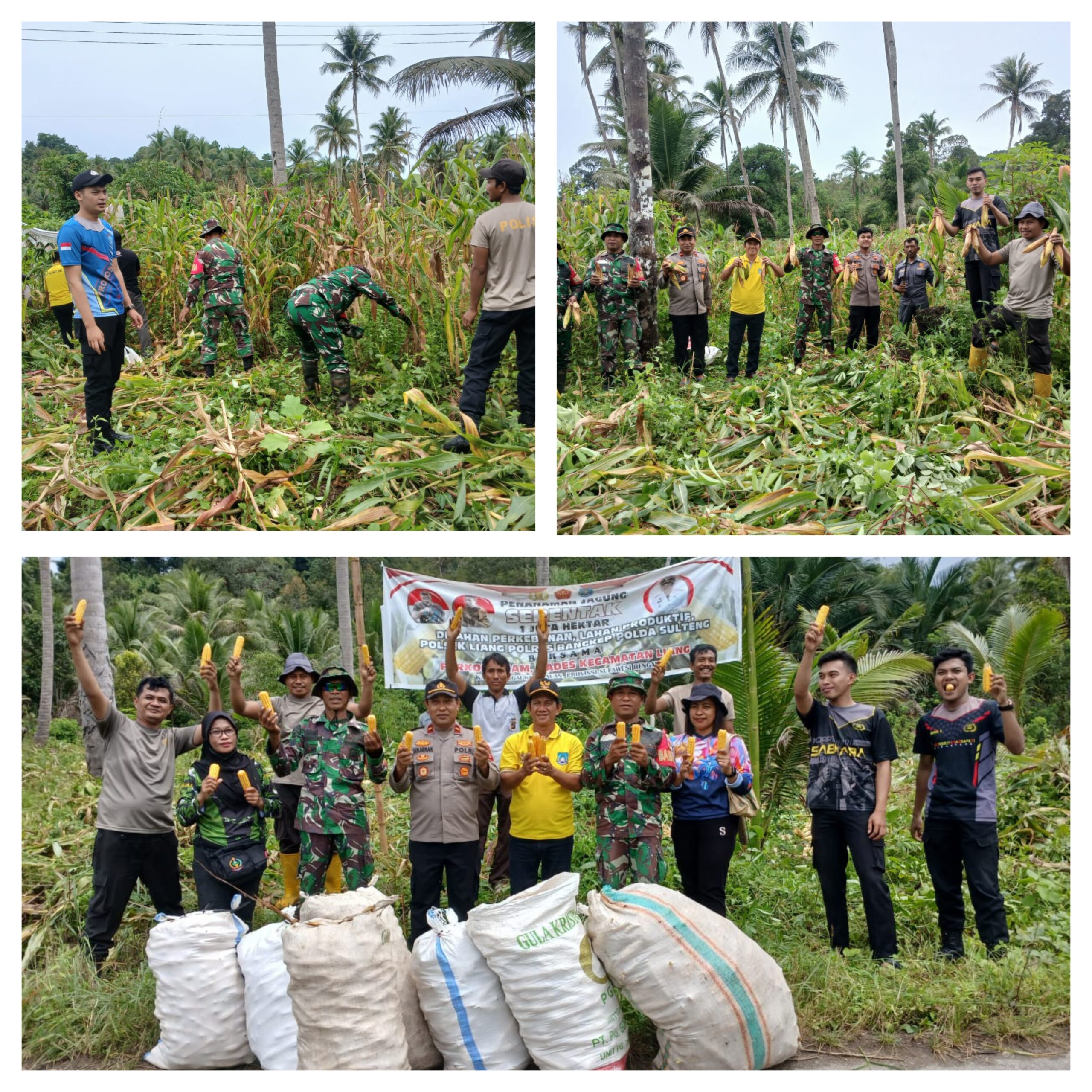 LIANG, Ragamrajawalinusantara.id — Wujud kemanunggalan TNI dengan rakyat dengan terjalinnya sinergitas dalam meningkatkan capaian pemerintah guna mewujudkan ketahanan pangan yang optimal, Yang Mewakili Danramil 1308-11/Liang Babinsa Kodim 1308/LB Serma Labua bersama Camat, Kapolsek , Anggota Babinsa Dan Bhabinkamtibmas melaksanakan panen Jagung manis Bertempat di Dusun III Desa Liang, Kecamatan Liang , Kabupaten Bangkep.Sabtu( 29/04/2025 )