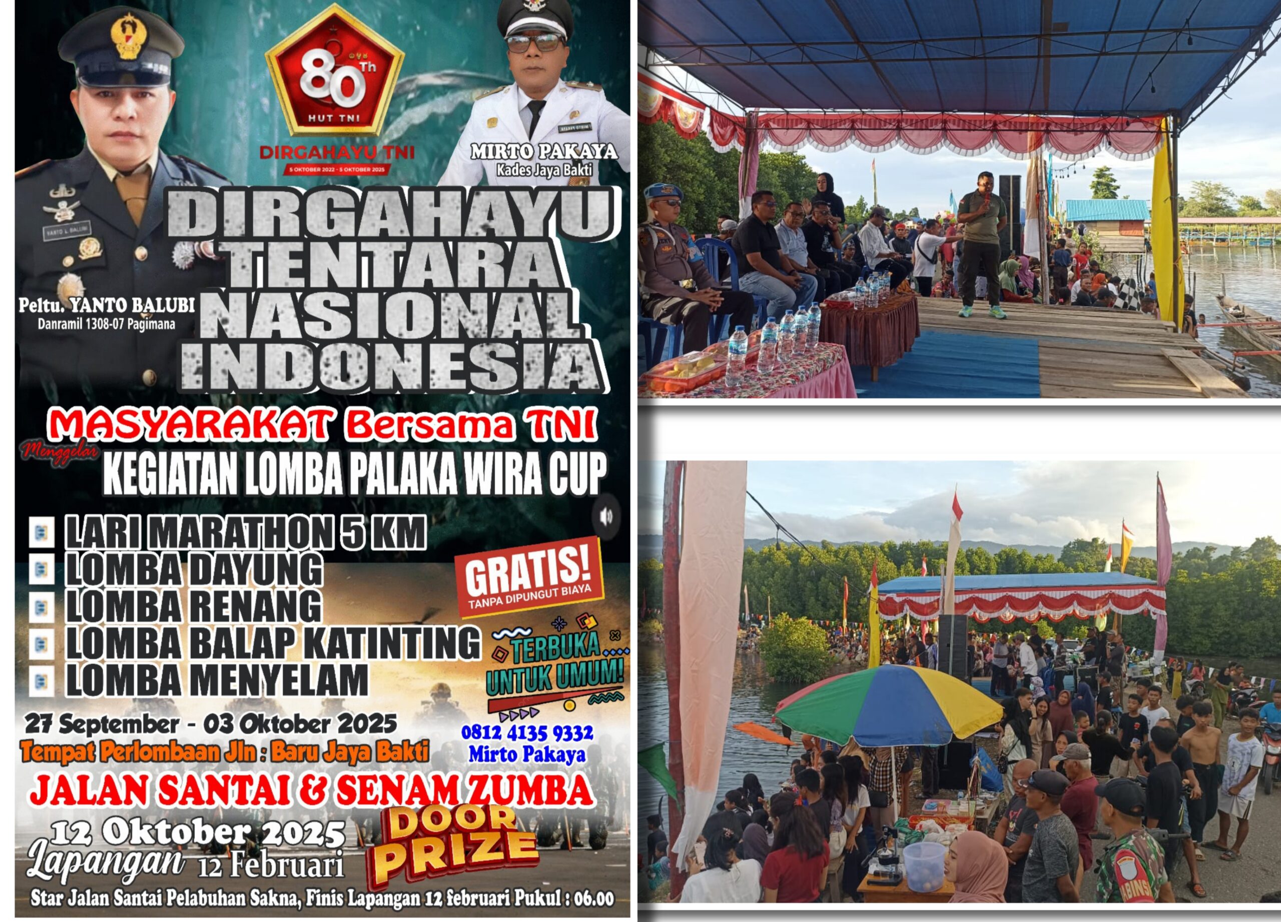 PAGIMANA,Ragamrajawalinusantara.id – Dalam Rangka Memperingati Hari Ulang Tahun (HUT) Ke-80 Tentara Nasional Indonesia (TNI) Tahun 2025, Koramil 07/Pagimana Kodim 1308/LB Korem 132/Tdlk Kodam XXIII/Palaka Wira Menggelar Tournament Lomba Palaka Wira CUP Tahun 2025.Lomba Tersebut “”Di Buka Untuk Umum”” Dan “”Gratis Tanpa Biaya””.Kegiatan Pembukaan Berlangsung Sangat Meriah pada Sabtu (27/9/2025) Sore, Di Lapangan Desa, Bertempat Di Desa Jayabakti, Kecamatan Pagimana, Kabupaten Banggai..
