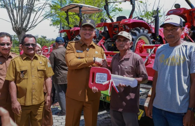 Aceh Tamiang – ragamrajawalinusantara.id | Bupati Aceh Tamiang, Irjen Pol. (P) Drs. Armia Pahmi, MH, memberikan apresiasi kepada Menteri Pertanian, Andi Amran Sulaiman. Hal ini diungkapkannya saat menyerahkan lima unit alat mesin pertanian (alsintan) jenis traktor roda empat kepada kelompoktani, Senin (27/10/25) siang ini, di lapangan parkir Kantor Bupati setempat.