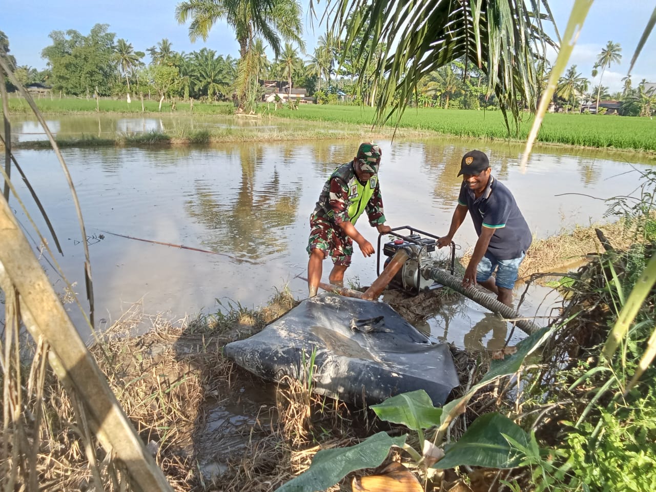 Ibrahim pemilik lahan mengucapkan terima kasih kepada Babinsa atas bantuannya. “Terima kasih kepada pak Babinsa yang telah membantu kami dalam melakukan pompanisasi sangat bermanfaat bagi kami para petani,” katanya.