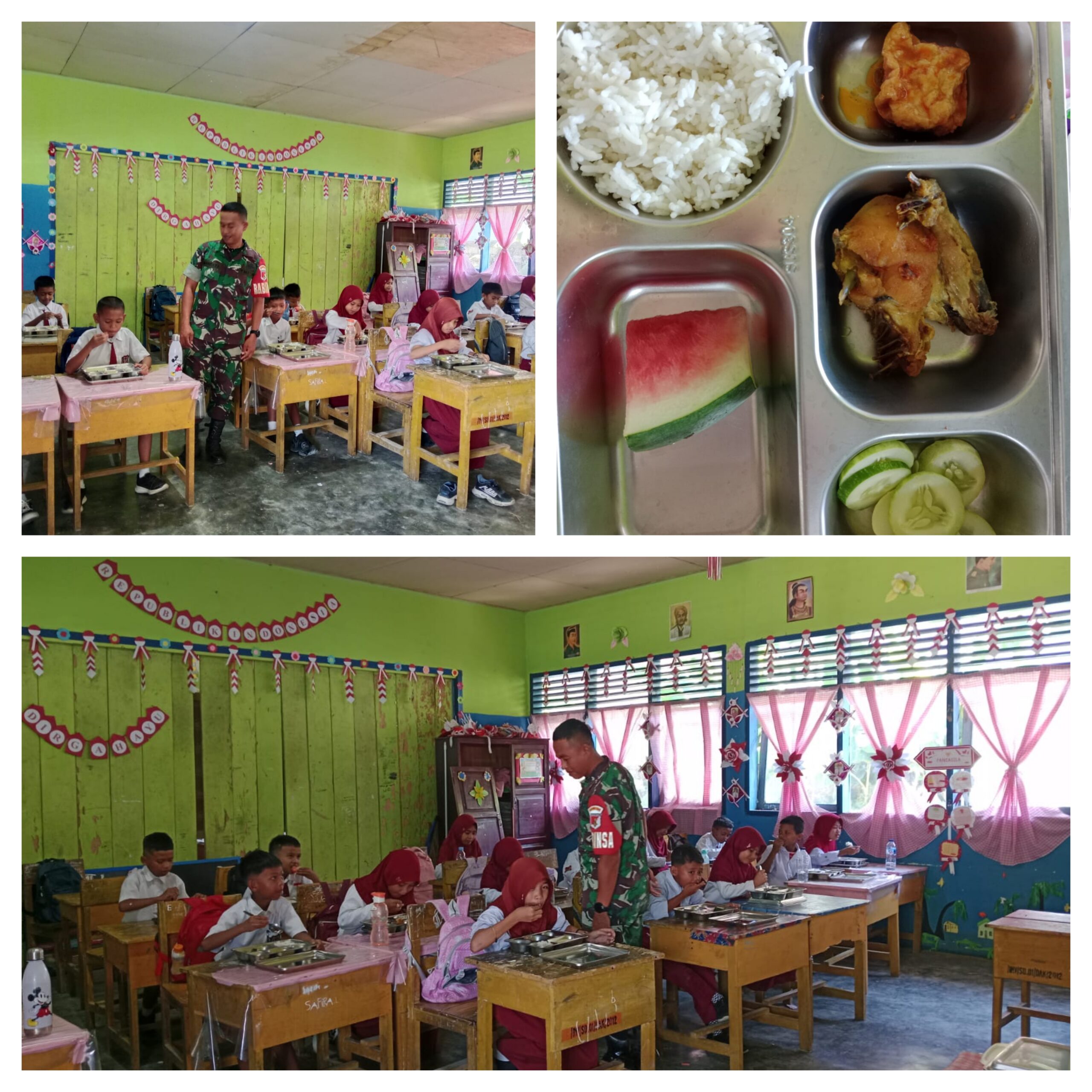 Ia menambahkan, keterlibatan TNI – Pori dalam program ini mencerminkan kerja sama yang baik antara aparat keamanan dan pemerintah dalam mendukung penyediaan gizi bagi anak-anak sekolah. Selain membantu kelancaran distribusi, pendampingan Babinsa juga bertujuan mempererat hubungan antara TNI dan masyarakat.