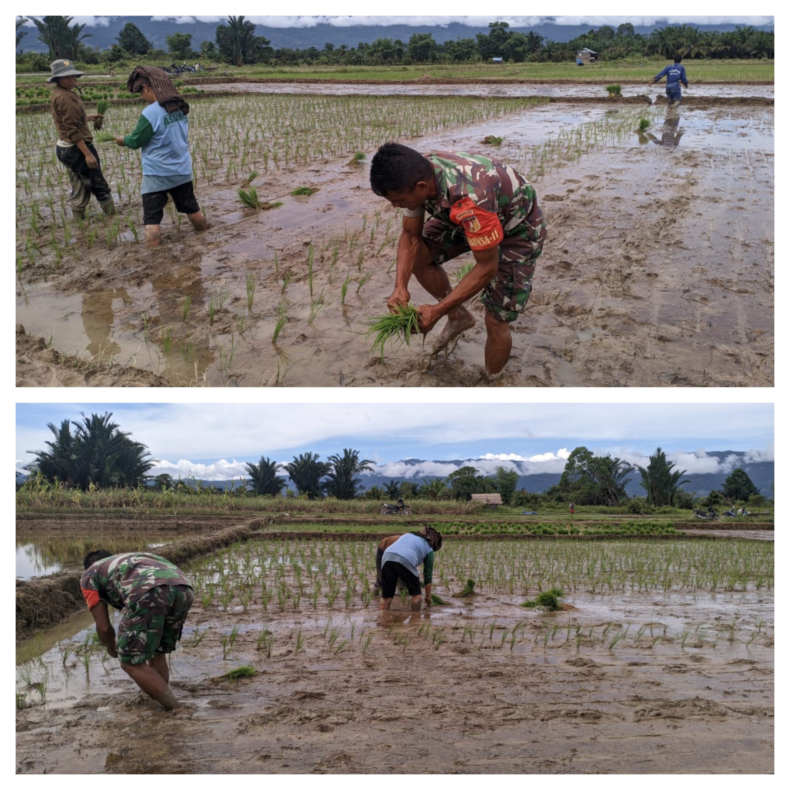 Ini sudah merupakan tugas kami sebagai aparatur kewilayahan membantu para petani dalam hal pertanian, seperti kegiatan tanam padi yang sedang saya kerjakan merupakan wujud kemanunggalan TNI- Rakyat,”ujarnya
