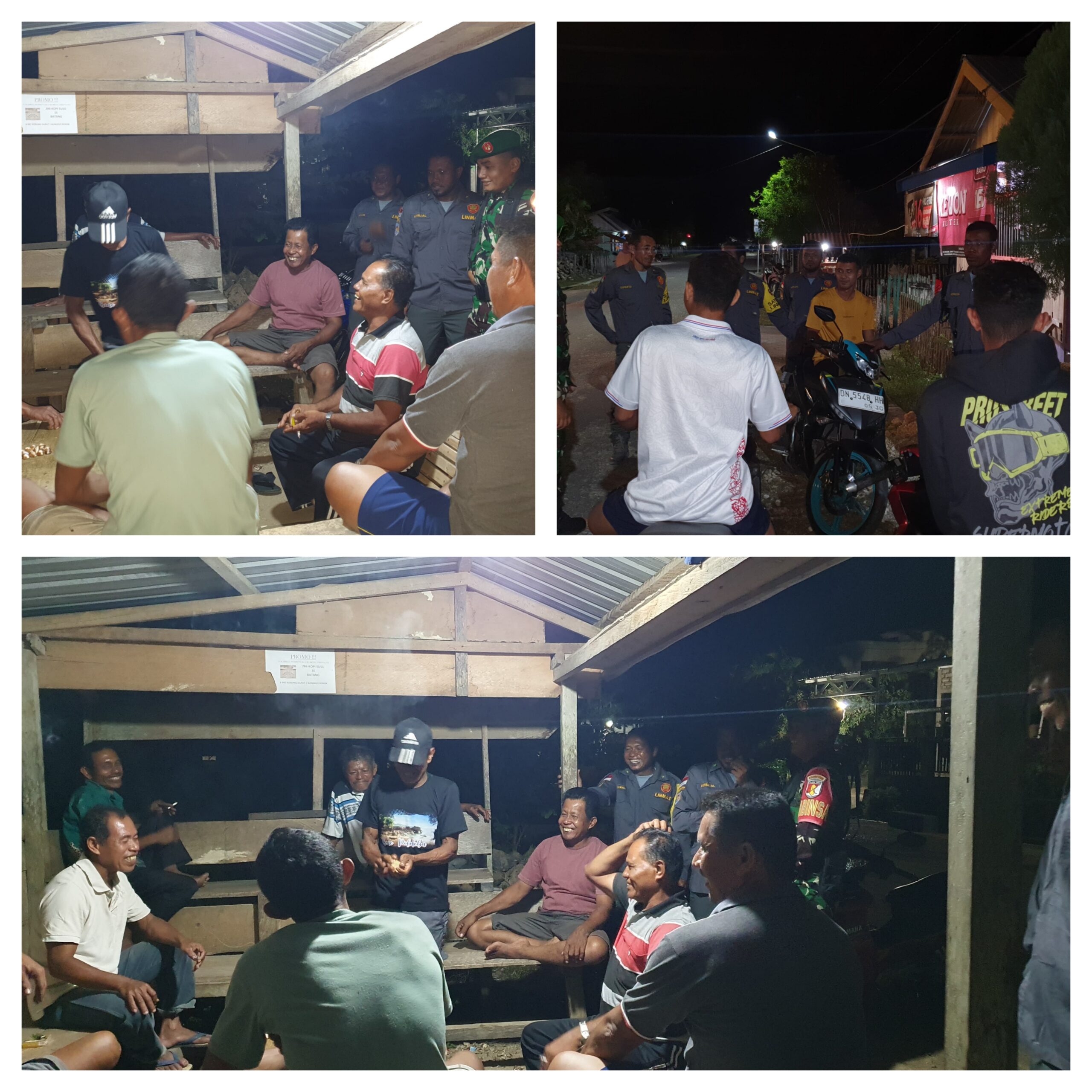 SALAKAN,Ragamrajawalinusantara.id  — Keakraban bersama perlu terlihat nyata, Babinsa Koramil 10/Salakan Jajaran Kodim 1308/LB ,Dpp Pratu Syarwan Sahriun Berserta Anggota Babinsa Bersama Kepala Desa Dan Linmas Desa Lopito Melaksanakan kegiatan patroli Siskamling Di Desa Lopito di wilayah Koramil Teritorial 10/Salakan Kecamatan Totikum, Kabupaten Banggai Kepulauan, pada Kamis malam (12/02/2026).