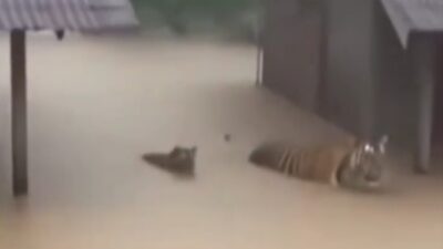 Hoax Dua Harimau Sumatera berkeliaran bebas saat banjir.