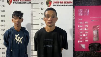 Lhokseumawe – Ragamrajawalinusantara.id | Dua pria pelaku tindak pidana penyalahgunaan narkotika golongan I jenis sabu…