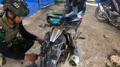 Prajurit Satgas Yonif 323 Kostrad Perbaiki Kendaraan Warga