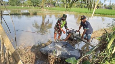 Sukseskan Ketahanan Pangan Babinsa Dampingi Petani Operasikan Mesin Pompa Air