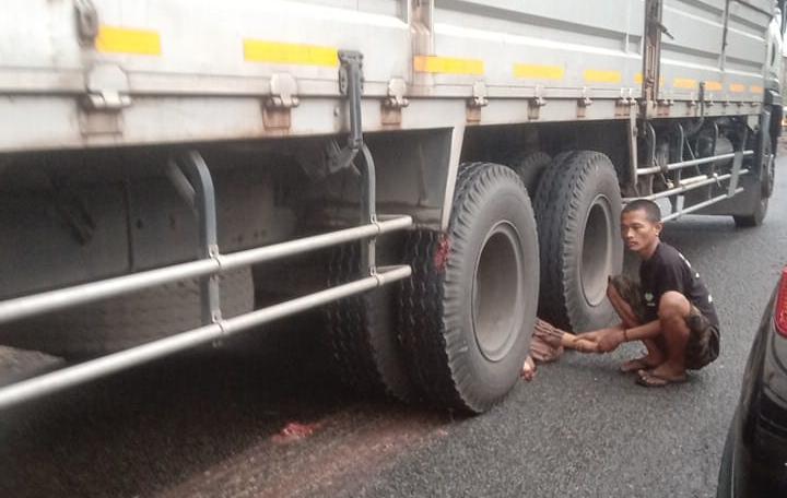 Korban kehilangan kendali hingga terjatuh ke badan jalan. Posisi korban yang berada di area titik buta pengemudi membuat sopir truk tidak sempat menghindar, sehingga korban terlindas roda kendaraan besar tersebut.