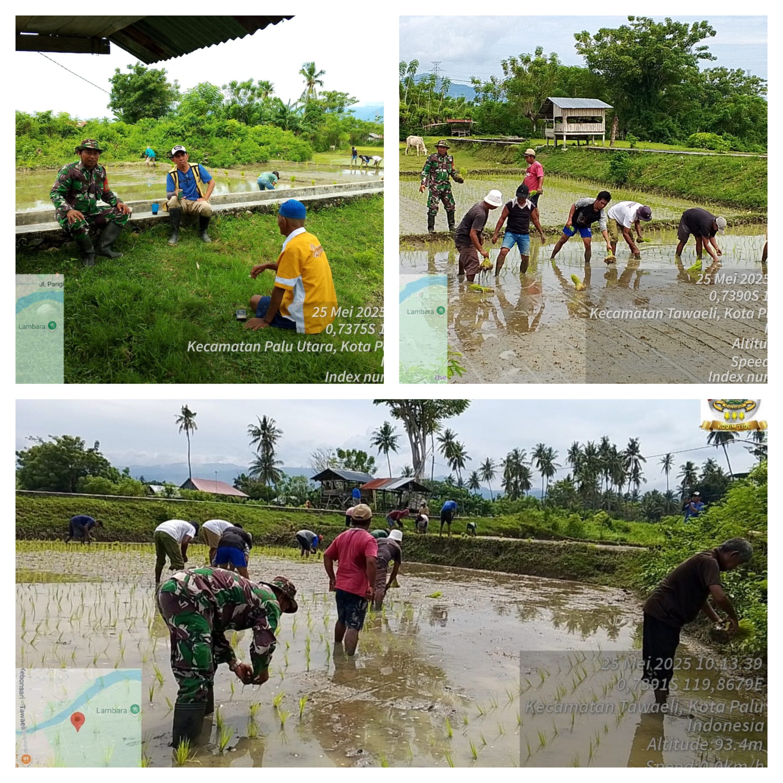 PALU,Ragamrajawalinusantara.id   — Komitmen TNI dalam mendukung ketahanan pangan nasional kembali terlihat di Kota Palu. Minggu (25/5/2025), Babinsa Koramil 1306-07/Taweli, Sertu  Abd fattah, terjun langsung mendampingi kegiatan tanam padi bersama kelompok tani Sintuwu  Anja di Kelurahan Lambara Kecamatan Tawaeli.
