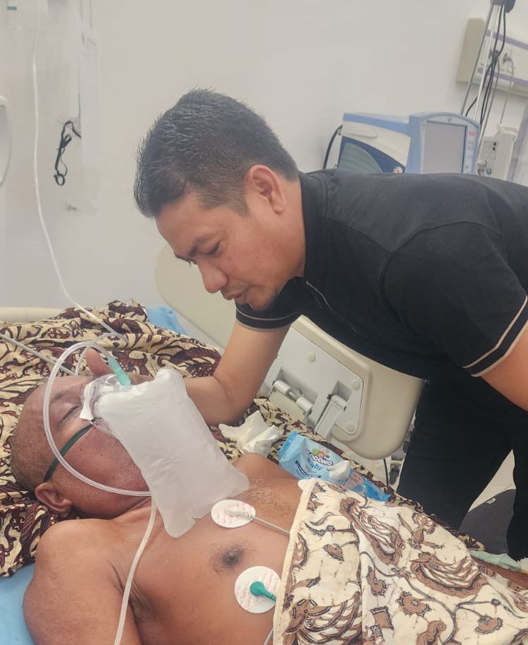 Kedatangan Wakil Bupati T. Zainal Abidin sontak membuat suasana ruang perawatan menjadi haru. Dengan wajah tenang dan penuh perhatian, beliau menggenggam tangan Saed yang tampak lemah.