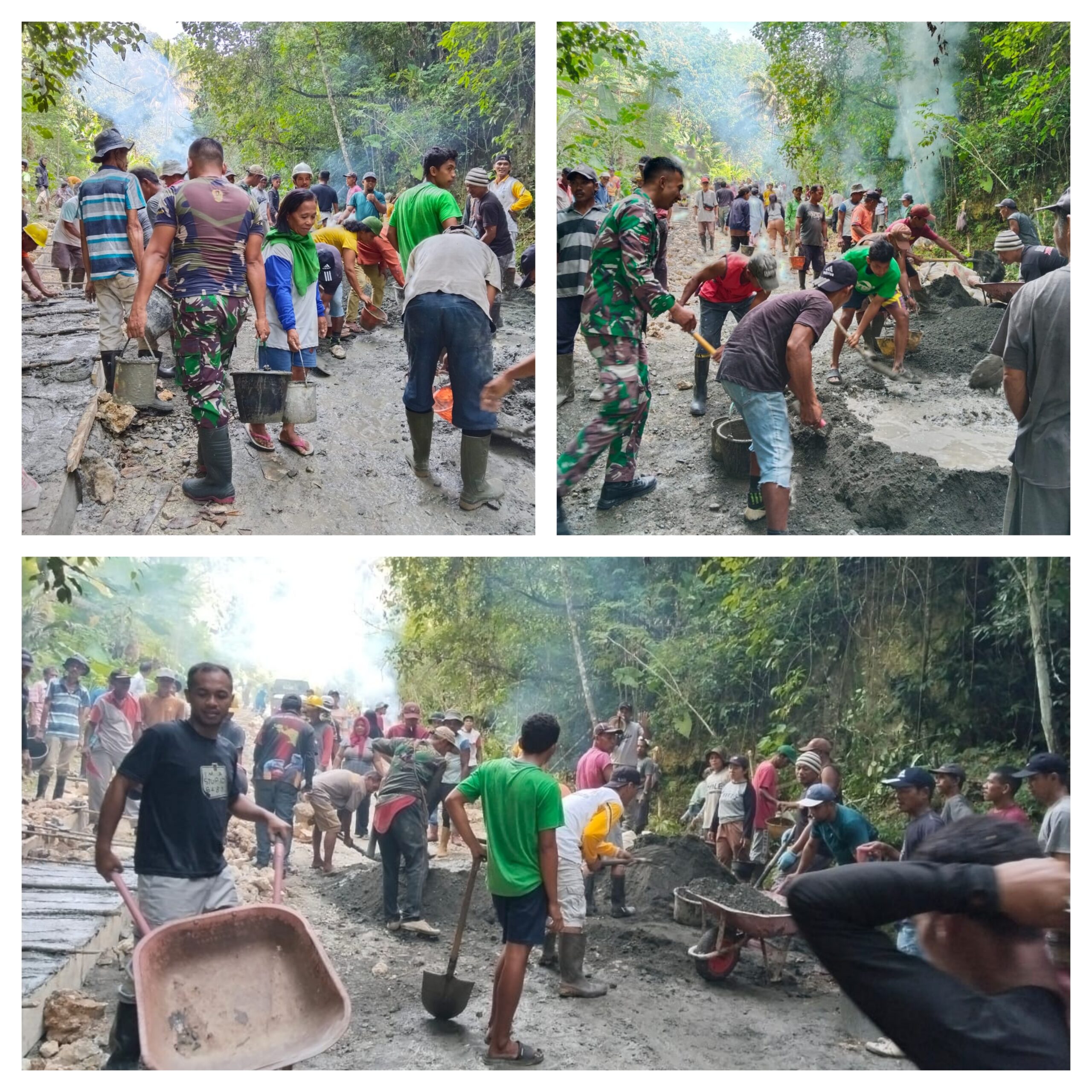 Selama kegiatan pengecoran, terlihat kebersamaan yang begitu erat antara prajurit Koramil 1308–06/Lamala dan Seluruh warga yang secara bergotong-royong menyelesaikan pengecoran jalan.