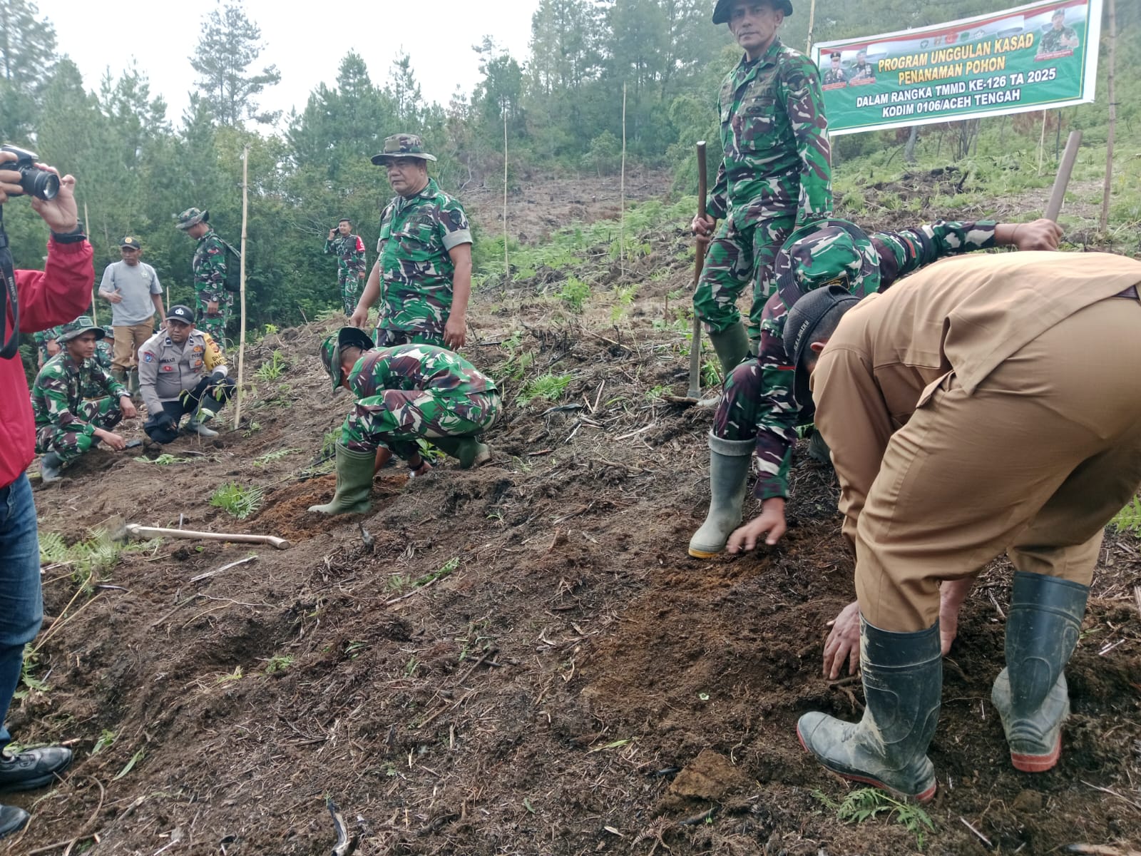 Aceh Tengah, Ragamrajawalinusantara.id – Dalam rangka mendukung kelestarian lingkungan sekaligus mempererat kemanunggalan TNI dengan rakyat, Satgas TMMD ke-126 Kodim 0106/Aceh Tengah melaksanakan kegiatan penanaman pohon di Desa Linung Bulen Dua, Kecamatan Bintang, Kabupaten Aceh Tengah, pada Minggu (02/10/2025).
