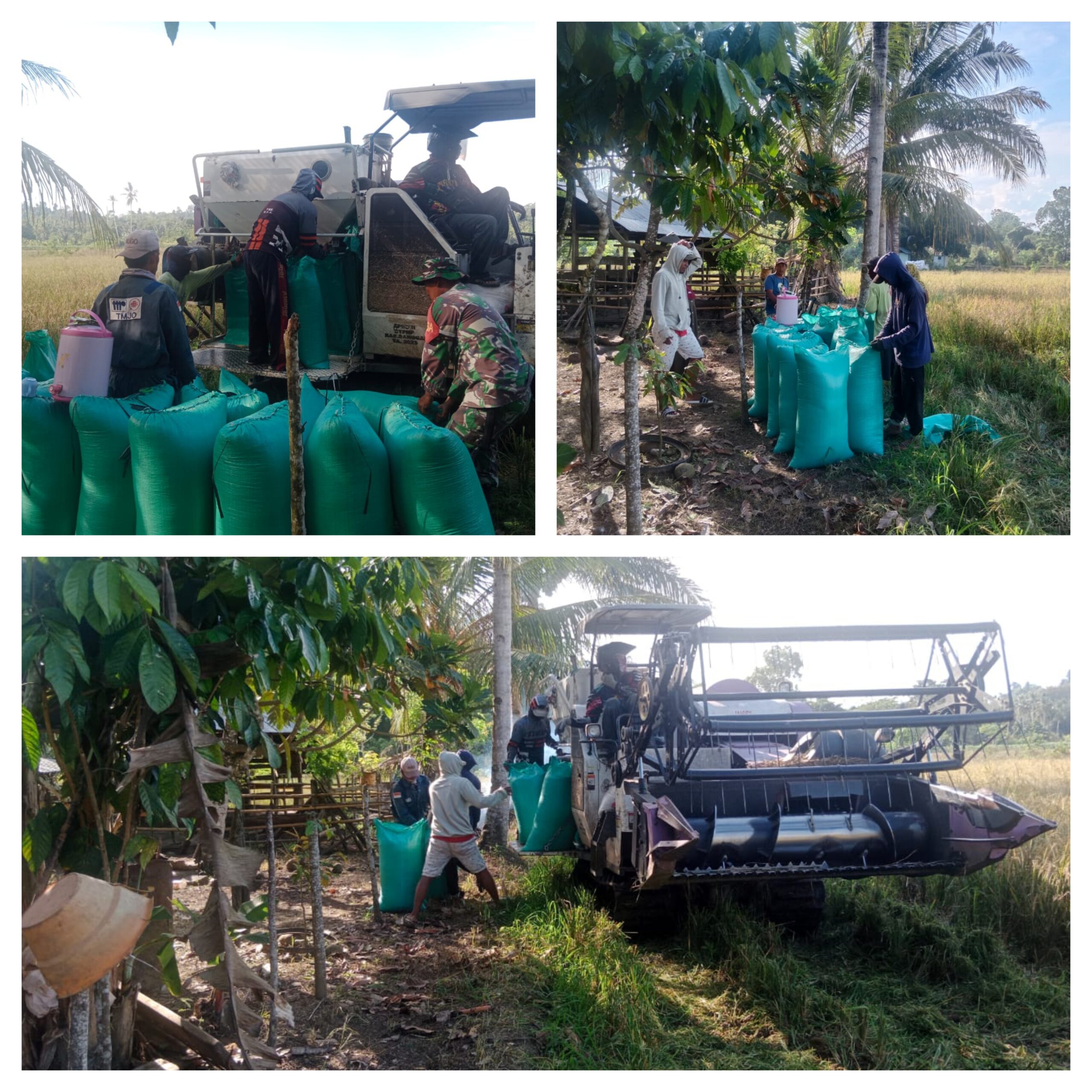 Wujudkan Ketahanan Pangan, Babinsa Koramil 1308-03/Batui  Membantu Panen Padi di Wilayah Binaan.